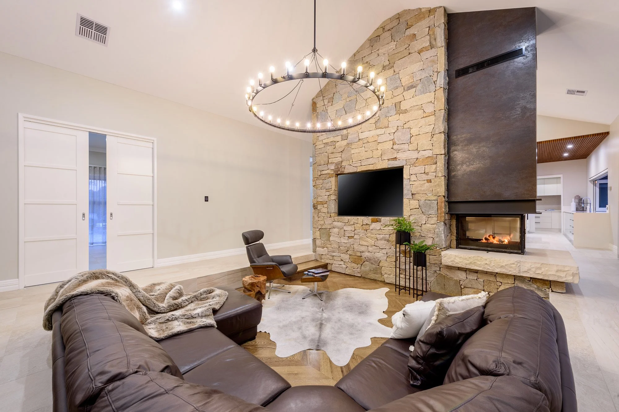 Kitchen, scullery, ensuite, bathroom, powder room, laundry, mud room, fireplace, flooring, tiling, decorative lighting.