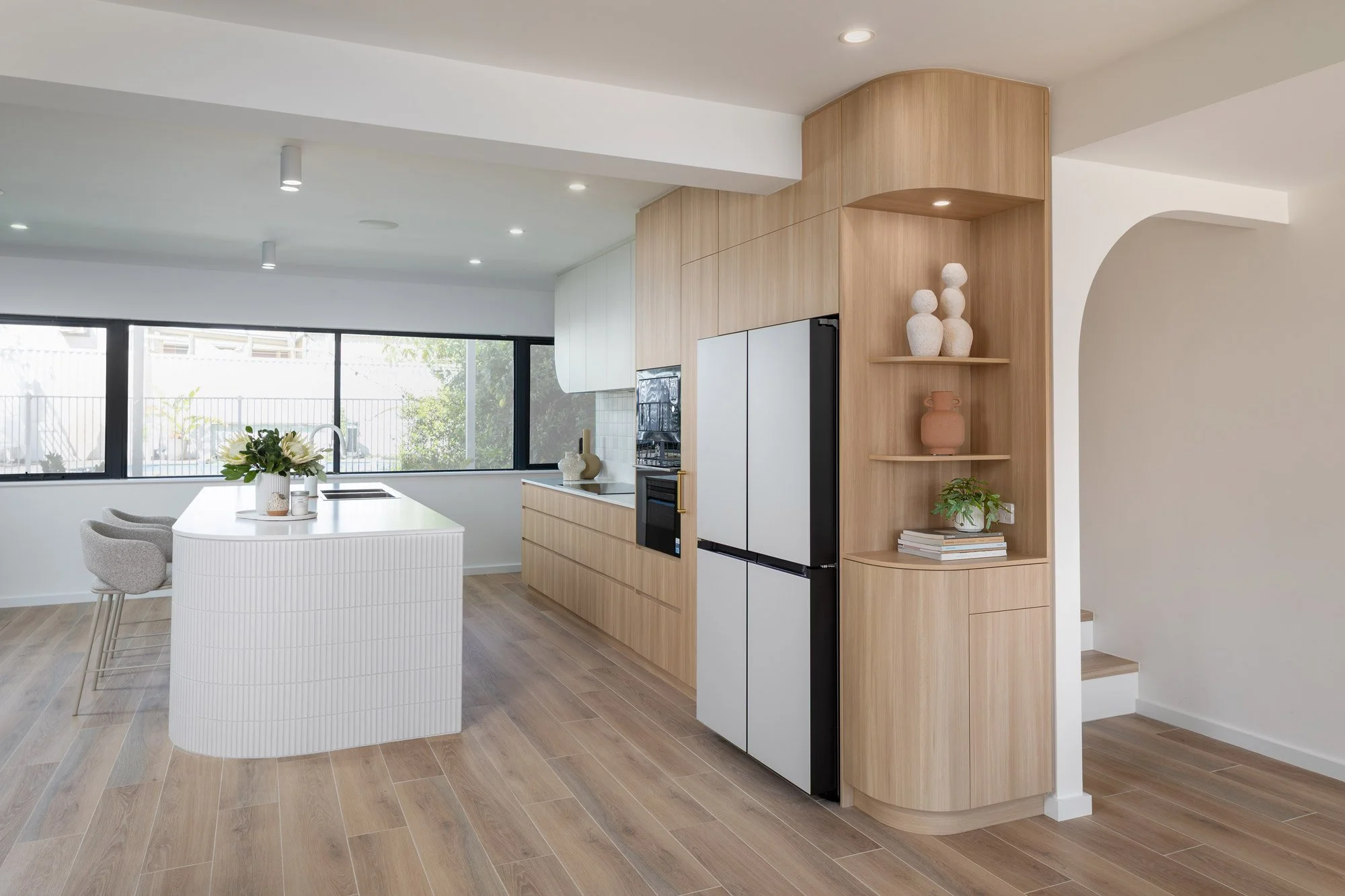 Space planning ground floor living area, kitchen, staircase, walk in pantry, laundry, flooring, ceiling, lighting, screen wall